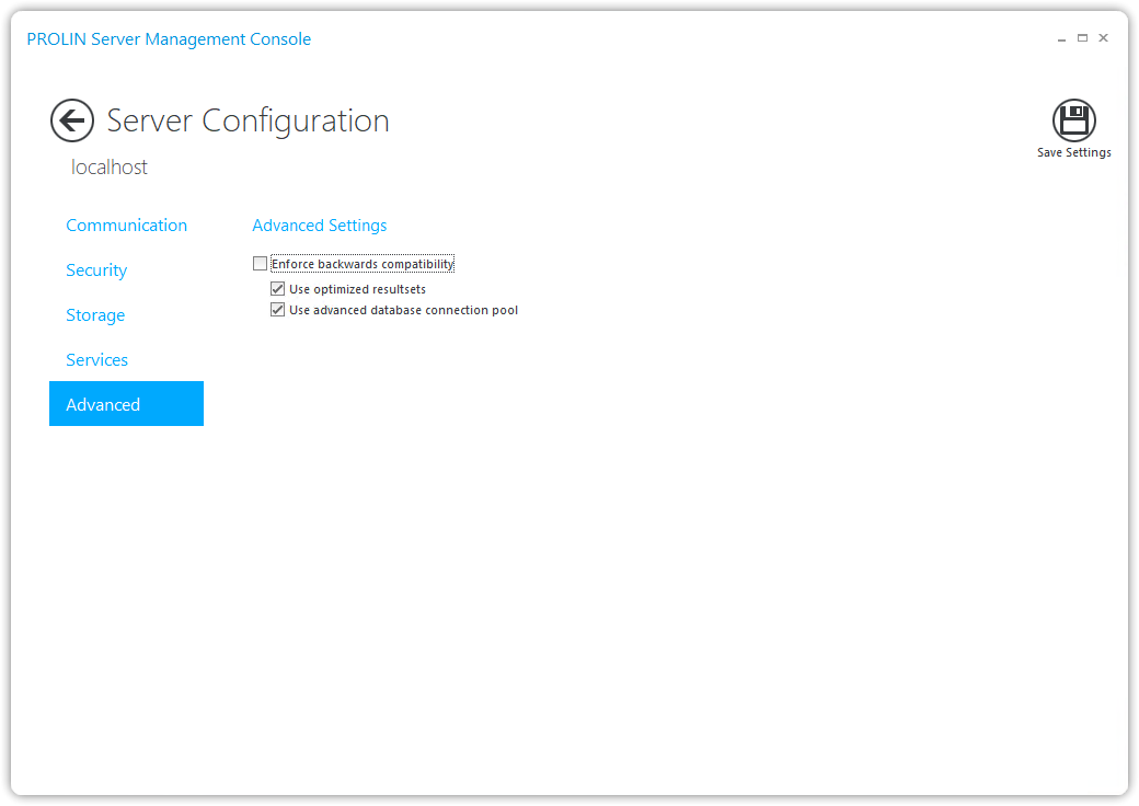 The Advanced page allows you to configure advanced options for your PROLIN Power Server instance.