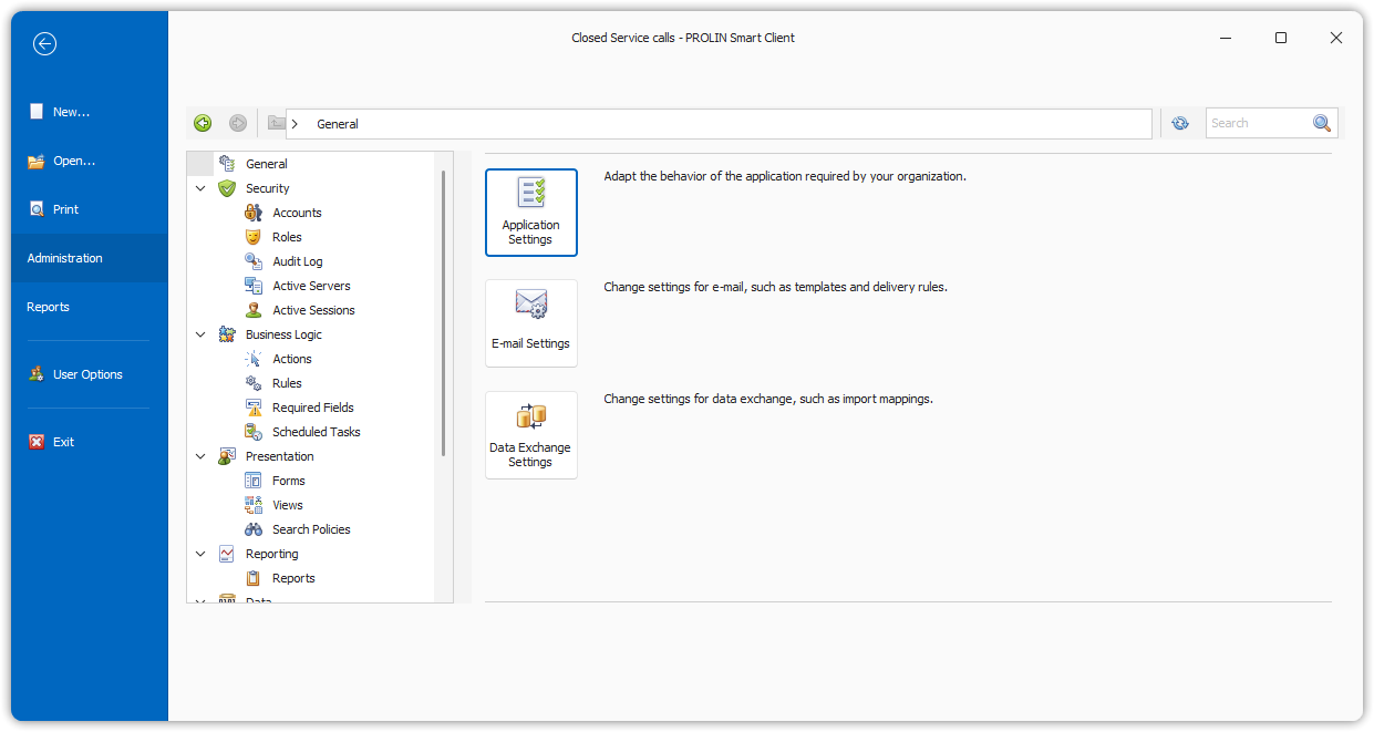 To initiate the Administration module, ensure that PROLIN Smart Client is running and you are logged in.