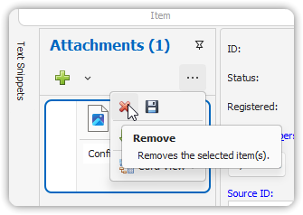 Attachments are located in the Attachment window, which is an action window typically docked to the side of the form.