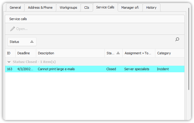 - In the Person item: shown as a list of related Service Calls