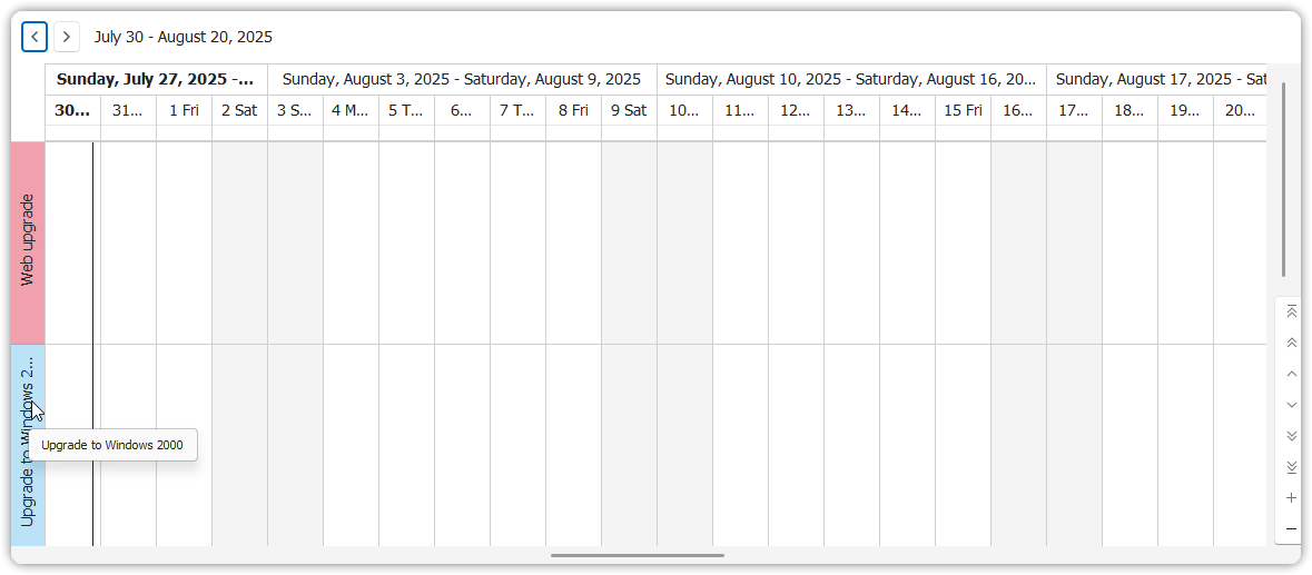 This view is useful for planning and managing multiple overlapping efforts.