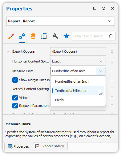 🧭 This setting controls the base measurement unit for all positioning and sizing properties in your report layout.