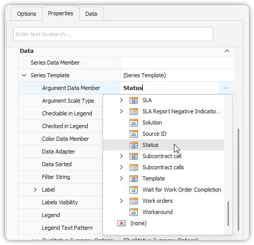 - Select the chart control on the design surface