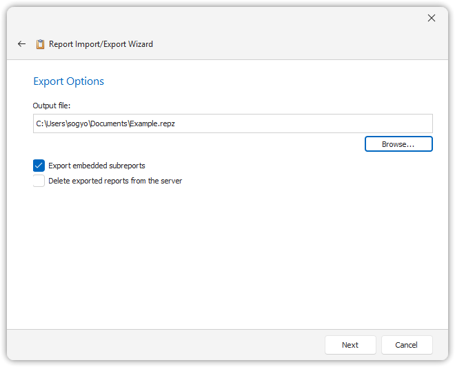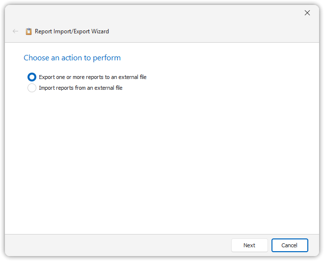 This wizard-based import/export functionality helps transfer reports between environments or share them across users.