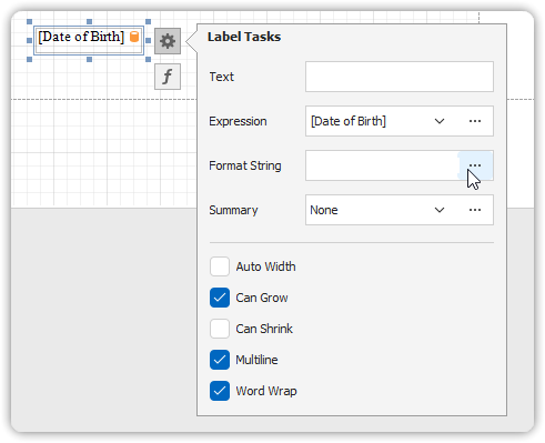 - Locate the data-bound control in your report.