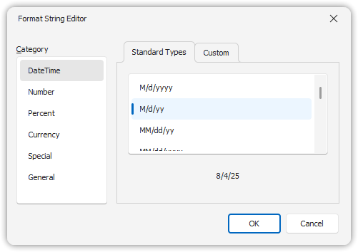 - Or enter a custom format string