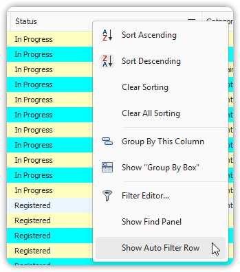 - Choose Show Auto Filter Row.