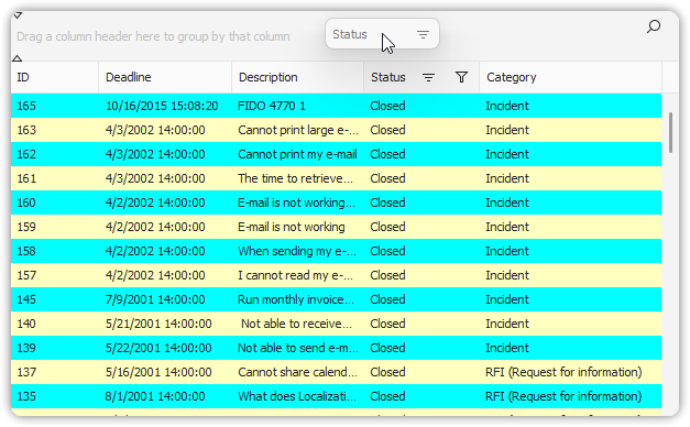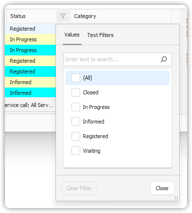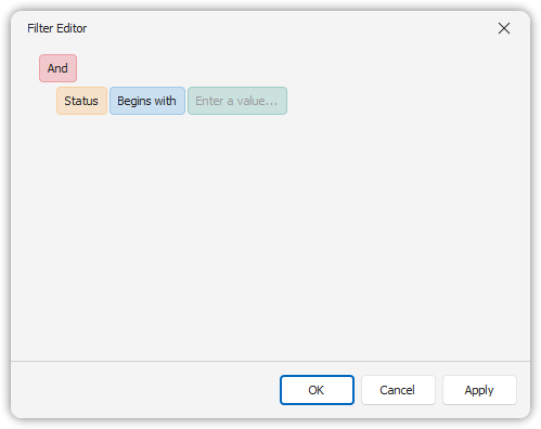 - Enter values into the filter row. Filtering applies immediately.