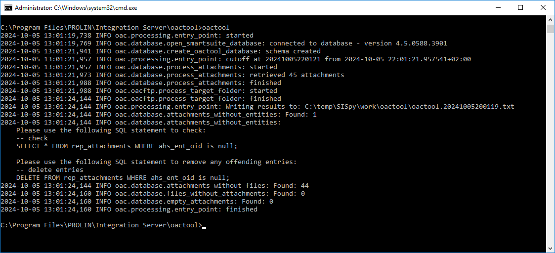 oactoolconfig file "C:\Program Files\PROLIN\Integration Server\oactool\oactool.py.config" does not exist